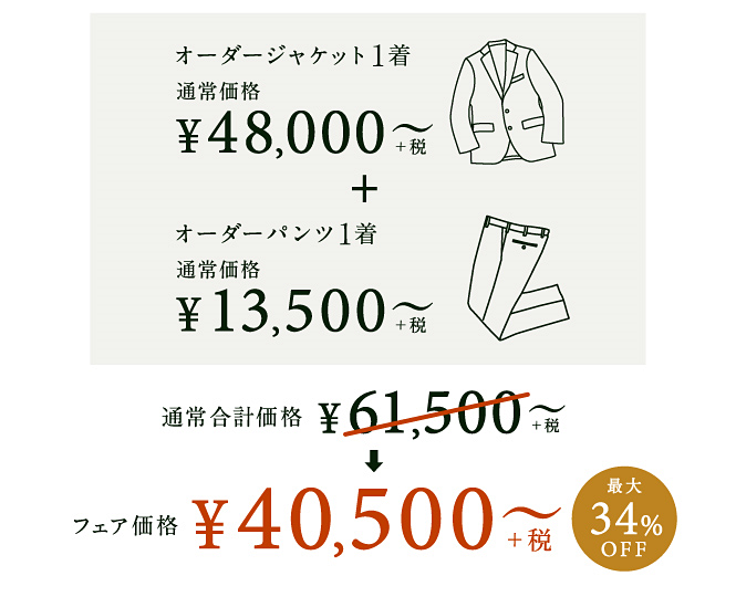 ▶オーダージャケット1着¥32,000~(税込¥35,200~)