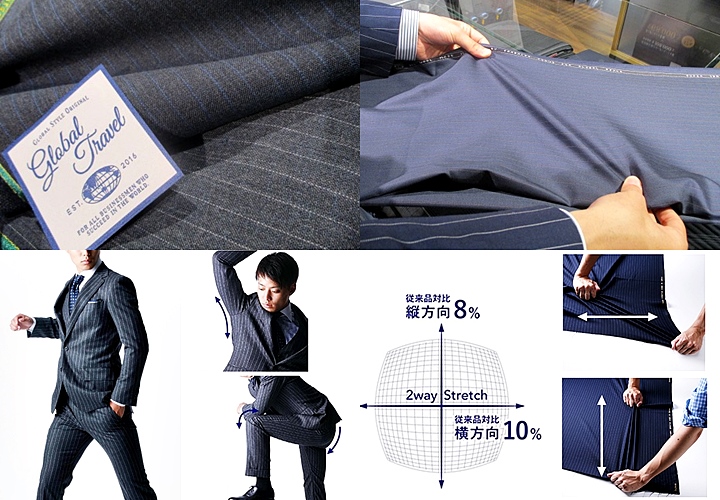 元々は、ポリエステルには反発力が強く立体的なスーツには向かないイメージがありました。しかし現在では、特殊な生地の織り方をした、ポリエステル素材を多く含んだ高級生地が登場し、高級スーツ生地として使用されています。また、強撚糸(きょうねんし)と呼ばれる通常より強度の高い糸を用いることにより、ウール100%でもシワになりにくく、シワからの回復が早い生地・ストレッチ性のある生地などがあります。