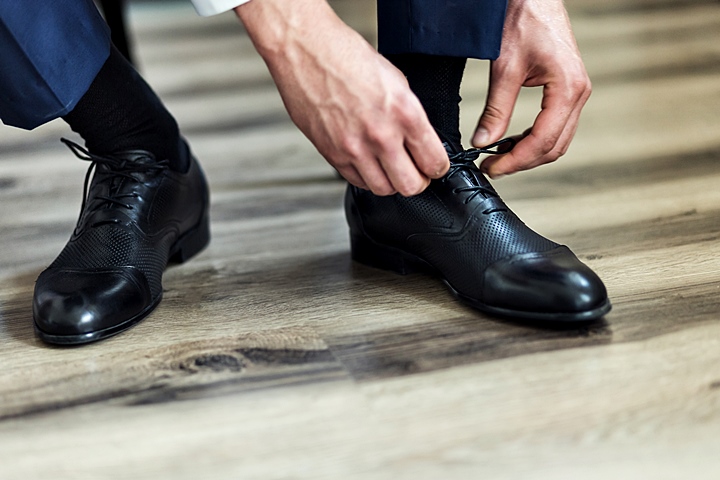 靴を選ぶ際は、当日と同じ靴下を準備し、試し履きをすることをおすすめします。靴下は、スーツ用の黒・紺色の無地を選び、私服で履くカジュアルな靴下を避けるようにしましょう。TPOに合わせた着こなしを意識することで、スーツの装いも自然と身についていきます。