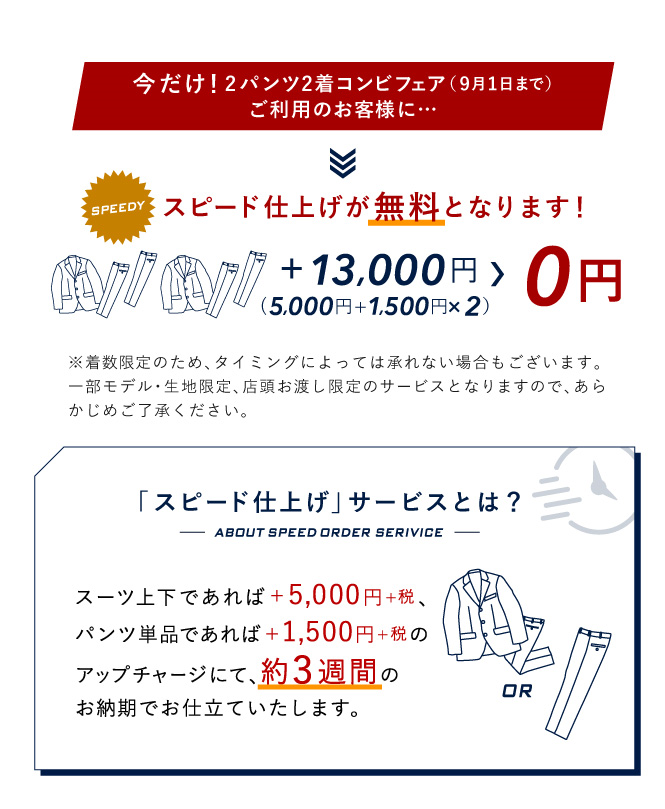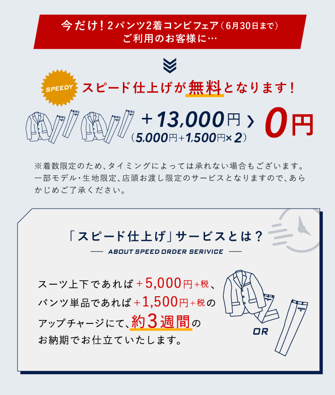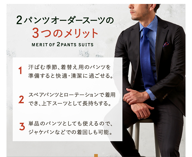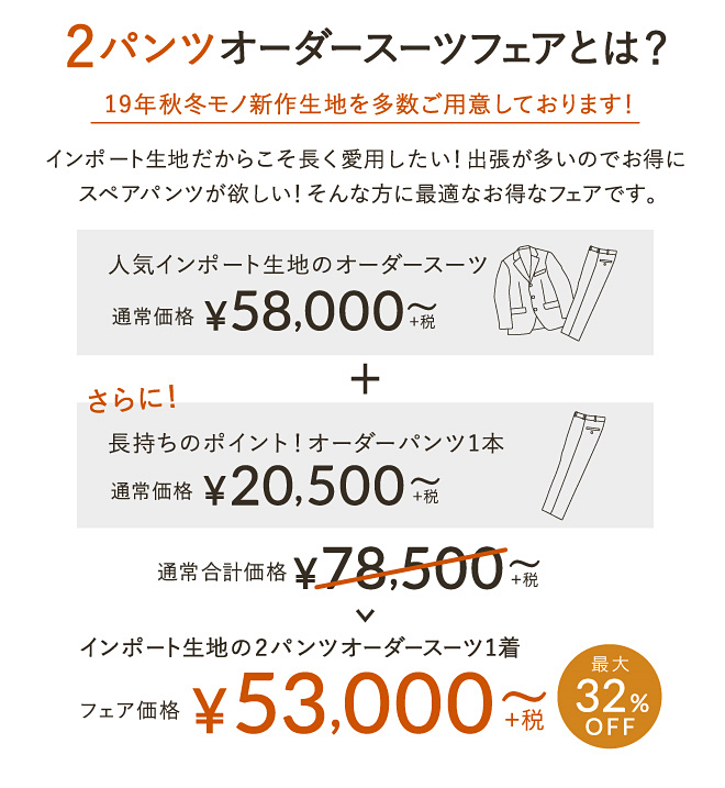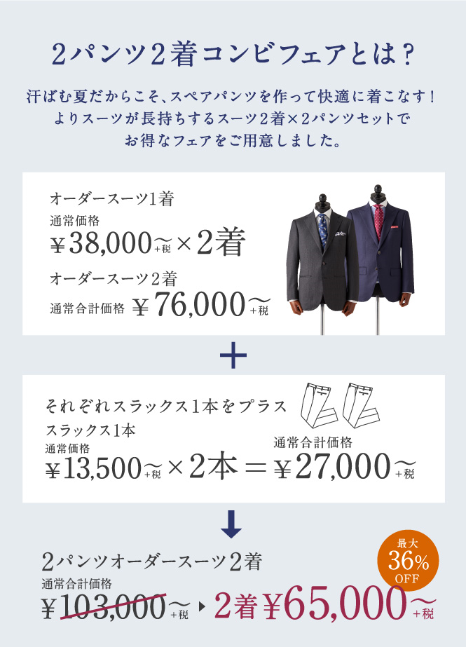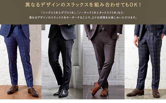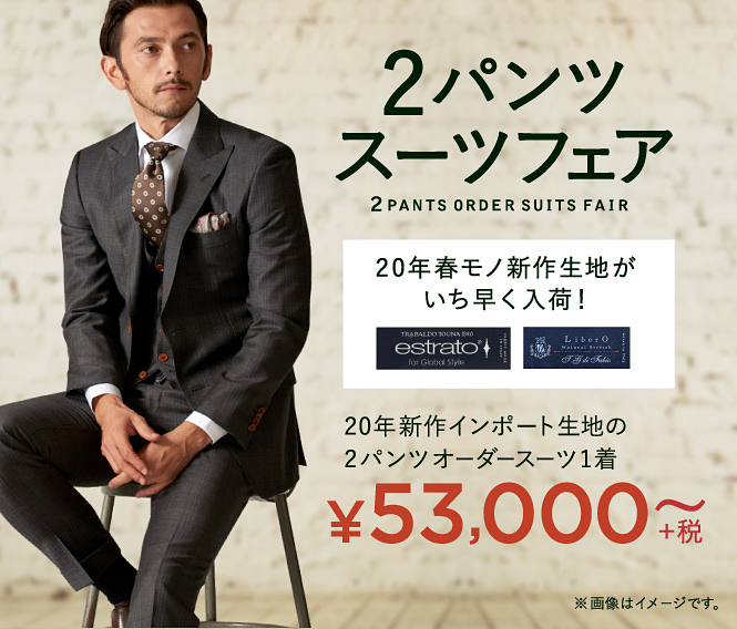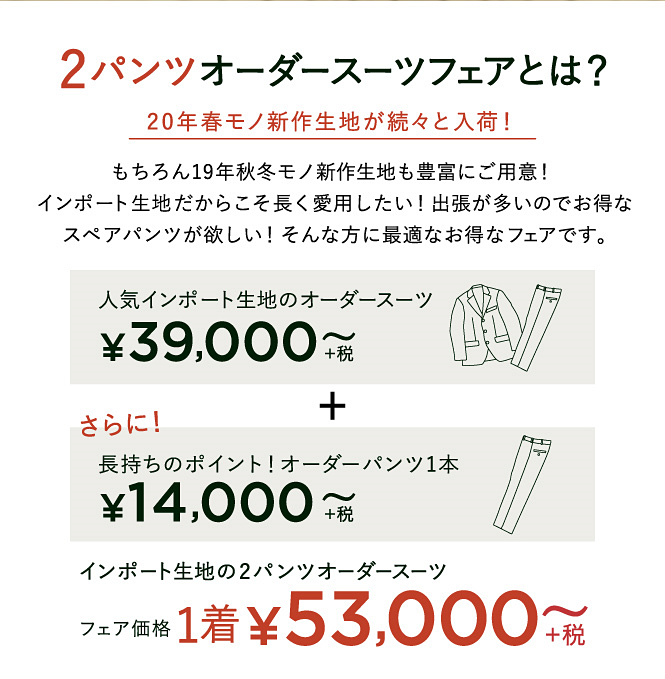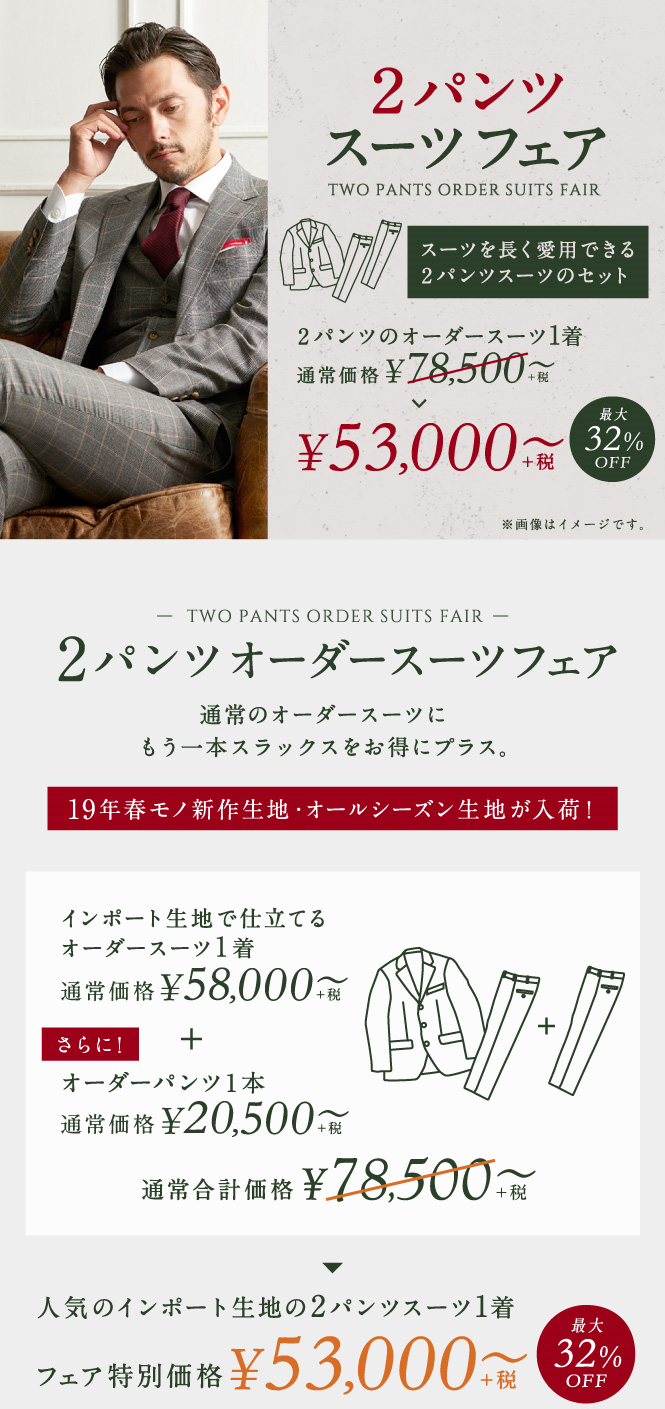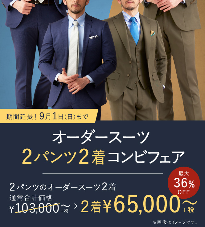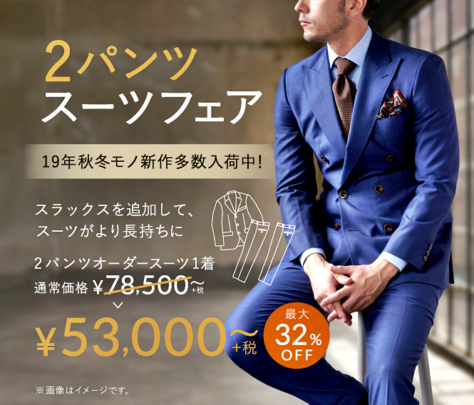 ▶本格オーダースーツ2着¥46,000~(税込¥50,600~)
