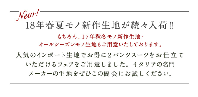 26年春モノ新作生地も対象で本格オーダースーツを
