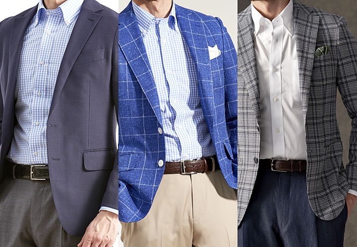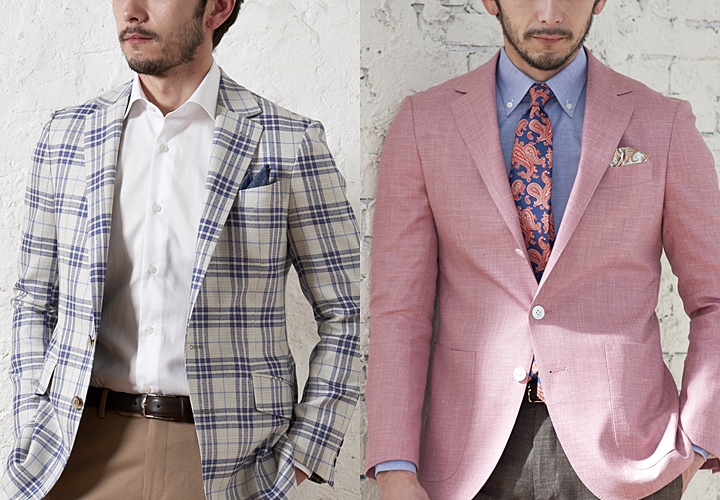 春夏のジャケットは、青白やピンクといった鮮やかな色合いを選び、他の人とは違ったセンスの良さをアピールすると良いでしょう。またノーネクタイでも、映えるチェック柄のジャケットもおすすめです。
