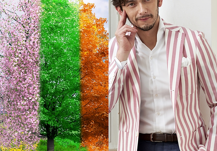春といえば“ピンク”。少し合わせるアイテムが難しいが、一気に春らしさがでます。トップスとの色合いを考えメリハリのある着こなしを。パンツはキレイ系で合わせるとオシャレです。また、ビジネスシーンでの定番ネイビージャケットで爽やかにまとめたり、春になると人気が出てくるコロニアルカラーの“ベージュやブラウン系”のジャケットでカジュアルに大人の男性な雰囲気も良いでしょう。
