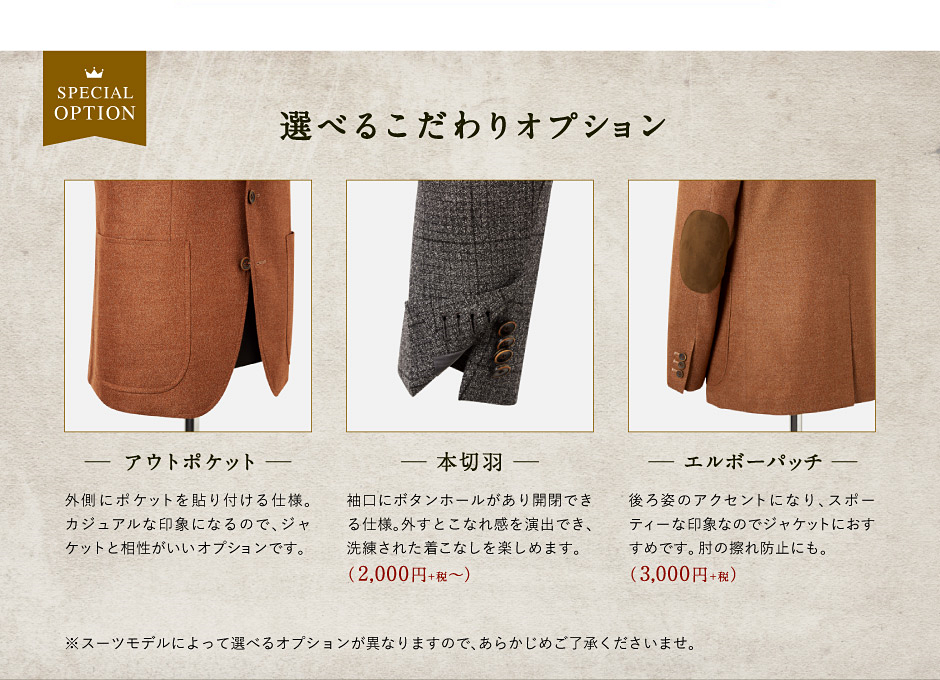 ▶オーダージャケット1着¥32,000~(税込¥35,200~)