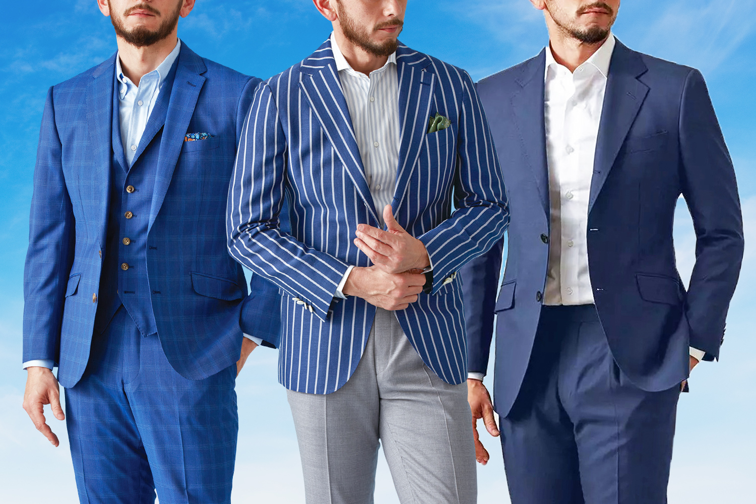 夏でもスーツを着ることが多い日本では、軽さとフォーマルを両立させた「夏用仕立て」のスーツを着用するのが涼しく快適な夏のスーツ生活のポイント。(「清涼感のある生地」や「洗えるスーツ」など…)