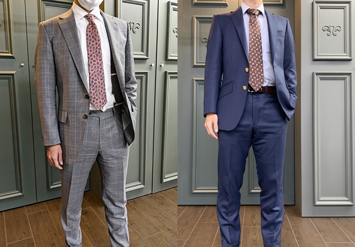 僕はスポーツをしていて意外とガッチリ体型だったのでこのモデルが似合う…というアドバイスを貰い1着はそちらに決定。もう1着は個人的に好みの英国モデルにしました。