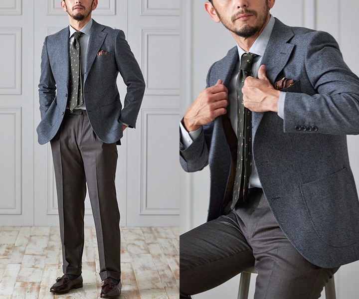 ジャケット生地:(左)ロロ・ピアーナ(右)ゼニアグレージャケットをお洒落に着こなそう