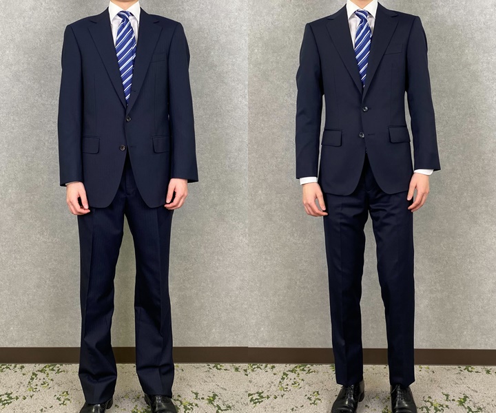 (左:体型に合っていないスーツ、右:オーダースーツ)