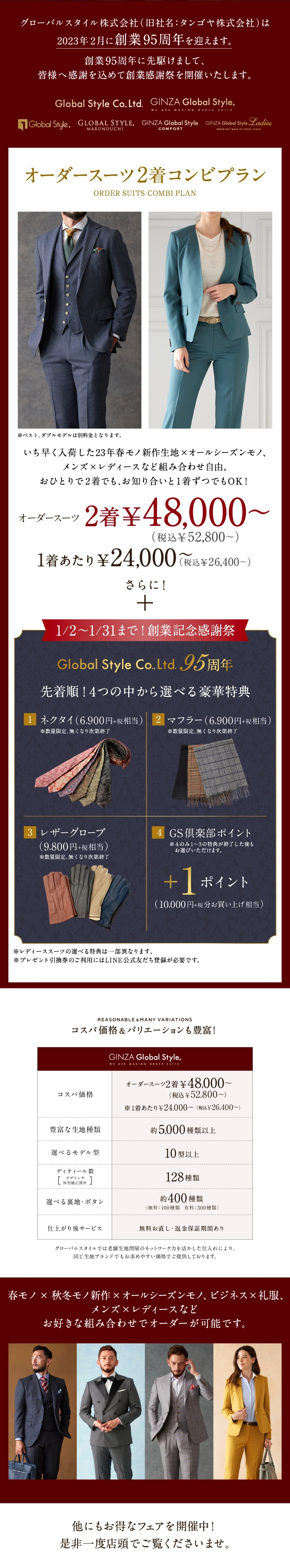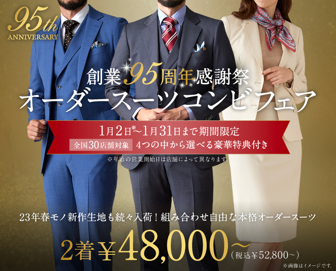 26年春モノ新作生地も対象で本格オーダースーツを