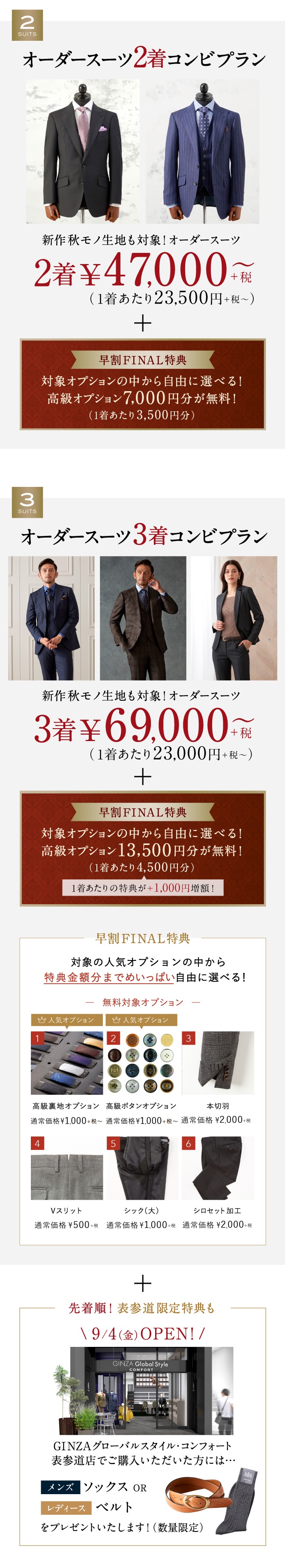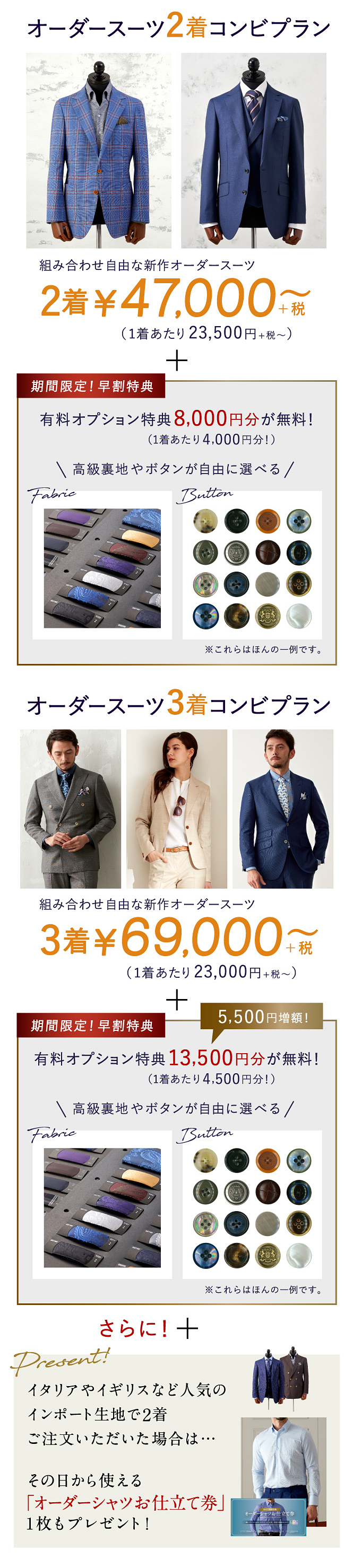 ▶本格オーダースーツ2着¥46,000~(税込¥50,600~)