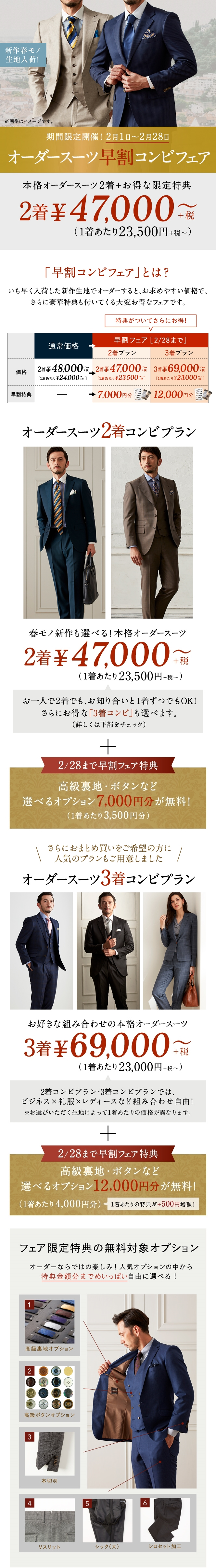 26年春モノ新作生地も対象で本格オーダースーツを