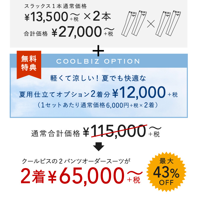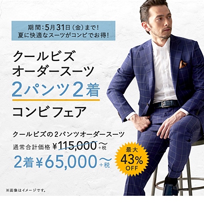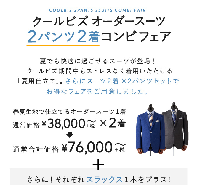 ▶本格オーダースーツ2着¥46,000~(税込¥50,600~)