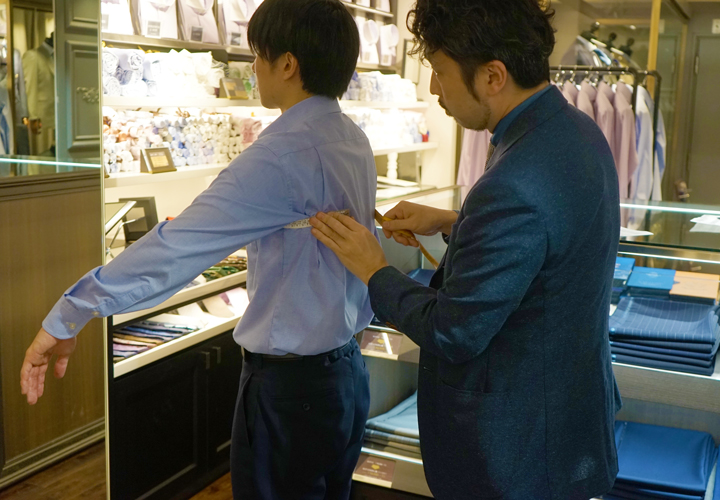 そして採寸。身体の隅々までサイズを測ります。さすがはプロのスタイリストさん、手慣れた様子でテキパキと進んでいき、体感で20~30分程度で採寸は完了しました。