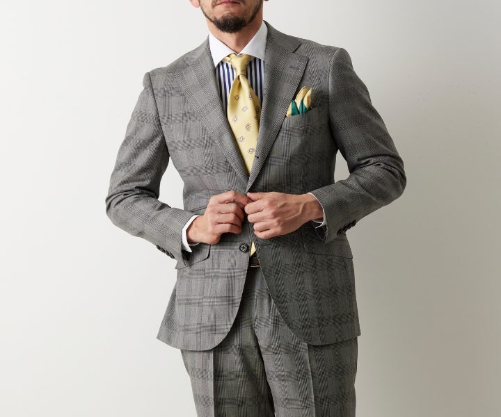 イタリア北西部のビエラ地区の中でも名門の機織メーカー。最高級ブランドに劣らない品質で、華やかさと品の良さを両立した着こなしになっています。