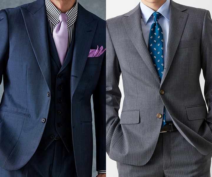 ▲(左)体型に合っていないスーツ(右)オーダースーツ▲