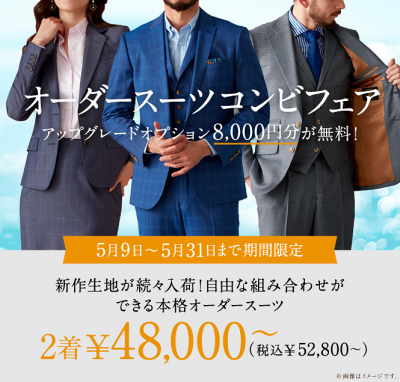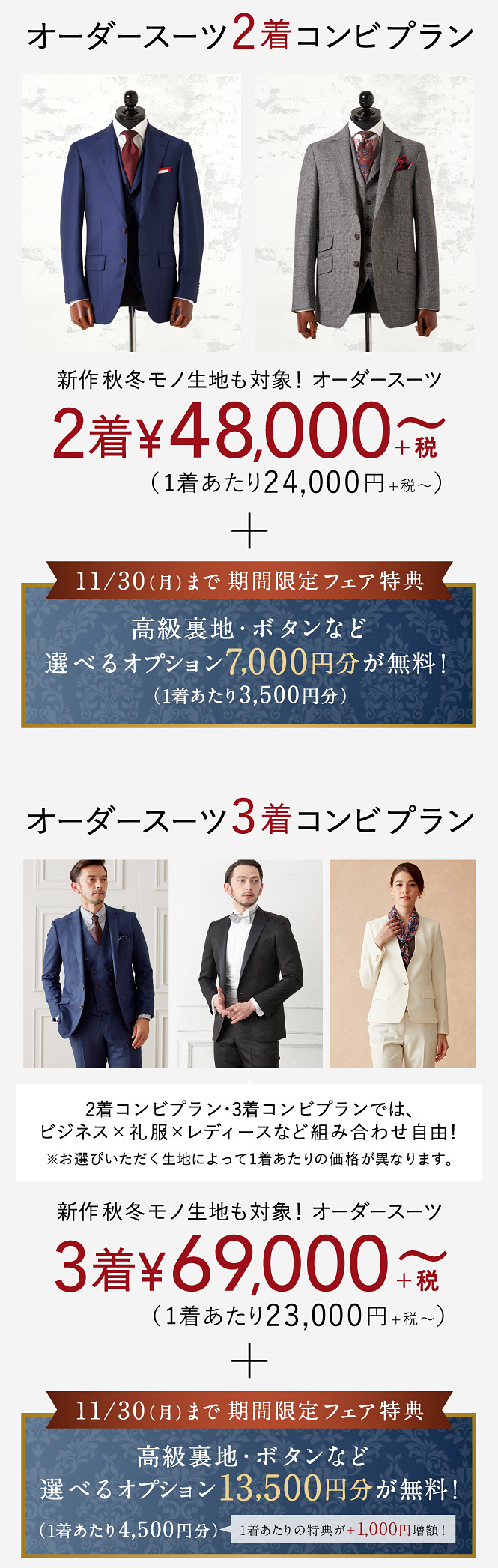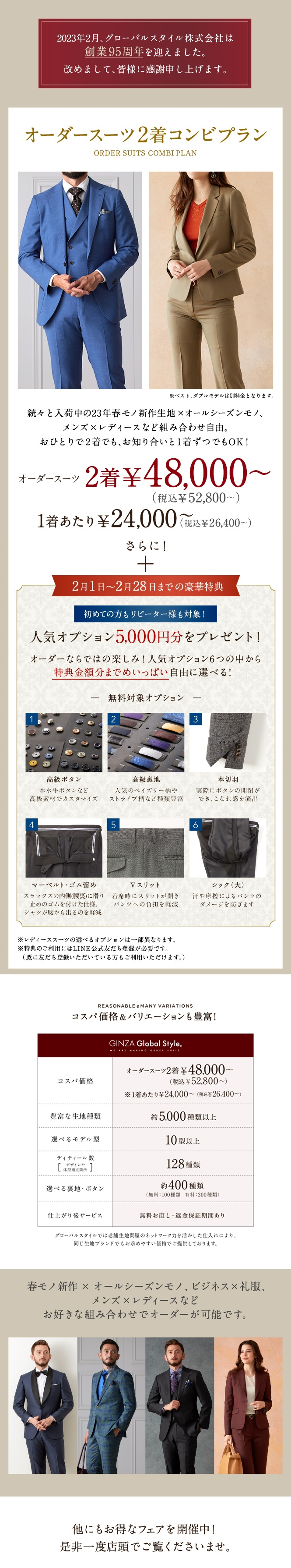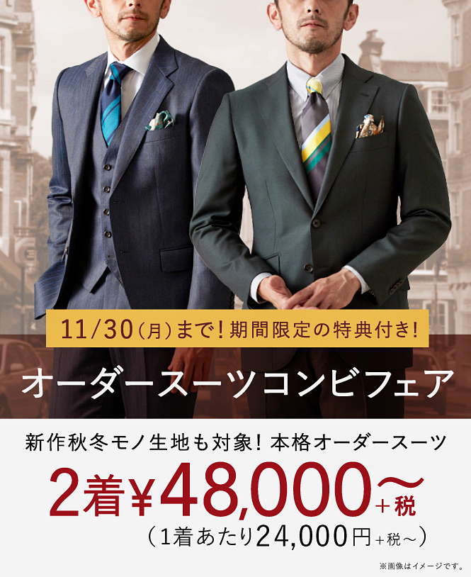 ▶本格オーダースーツ2着¥46,000~(税込¥50,600~)
