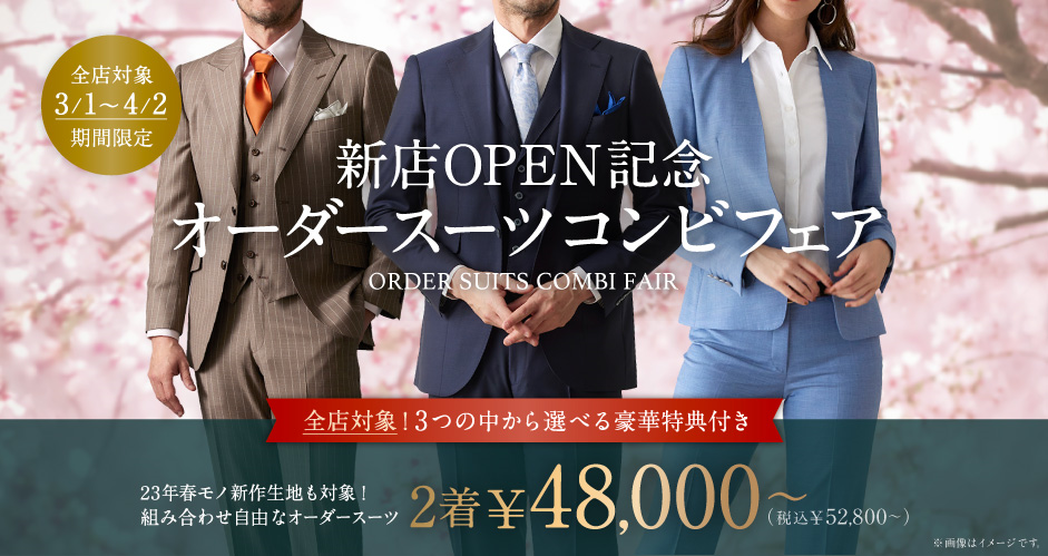 26年春モノ新作生地も対象で本格オーダースーツを