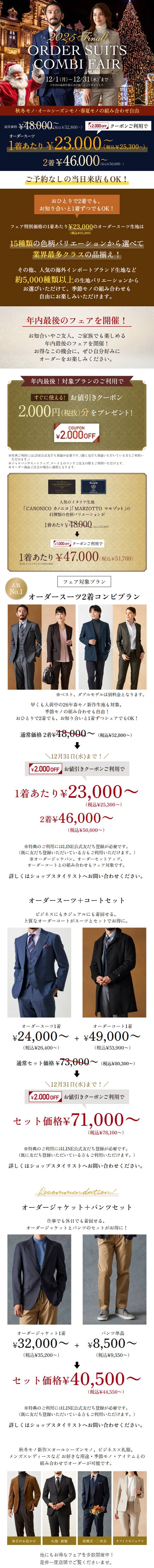 《予約なし来店OK!》年内最後の豪華特典付でオーダースーツ1着2万円台~