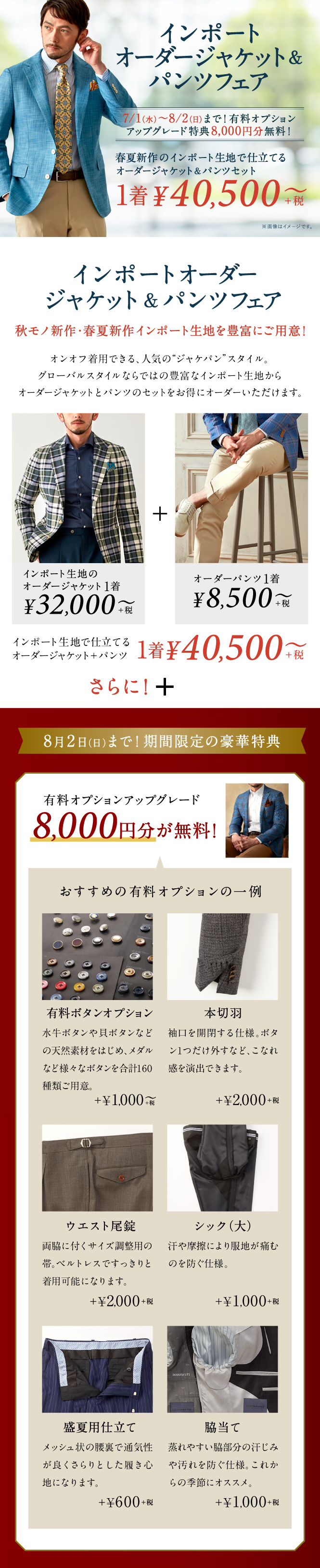 グローバルスタイルでは海外インポートブランド生地のオーダージャケット&パンツが1セット4万円台~作れるフェアも開催中。要チェックです!