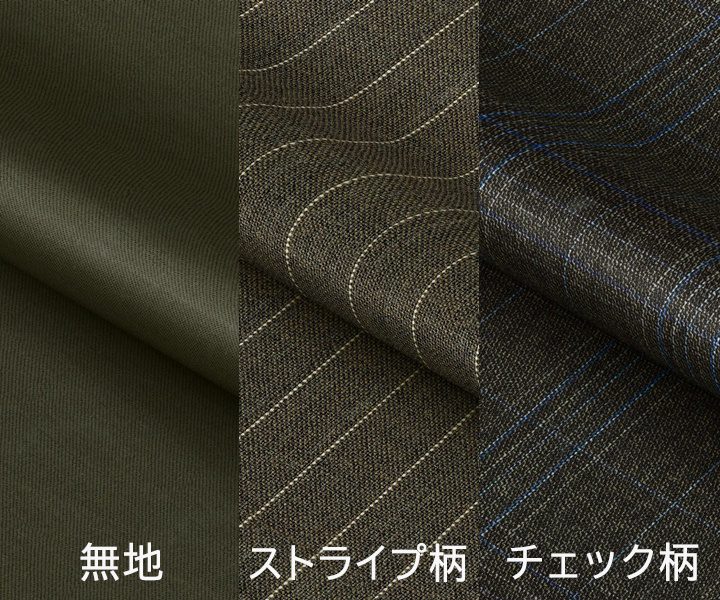グリーンスーツの柄は、「無地」「ストライプ柄」「チェック柄」などがあります。無地は、ビジネスシーンでも使いやすく落ち着いた印象を与えます。ストライプ柄やチェックの柄は、カジュアルな印象が強くなり、おしゃれで個性を出すことができます。ビジネスシーンで着用する場合は、細めのストライプ、控えめなチェック柄を選ぶと良いでしょう。