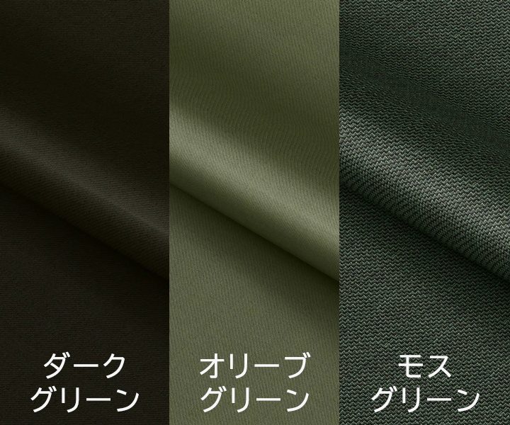 A. 一般的に「グリーン」は緑寄りの色味、「カーキ」はベージュ〜ブラウンを含んだくすみ系の緑を指します。どちらが優れているということはなく、どちらもアースカラー特有の柔らかい印象を与えてくれます。好みや着用シーンに合わせて選ぶのがおすすめです。