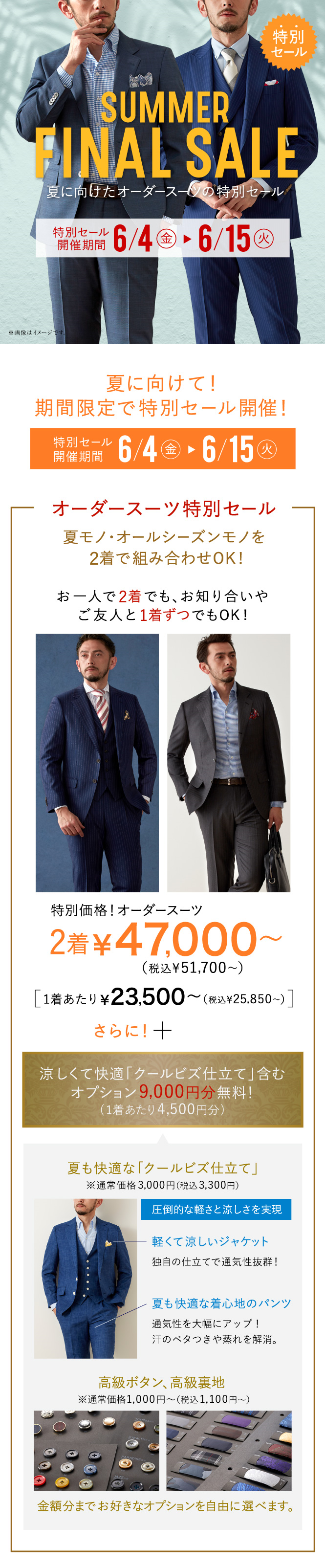 《予約なし来店OK!》年内最後の豪華特典付でオーダースーツ1着2万円台~