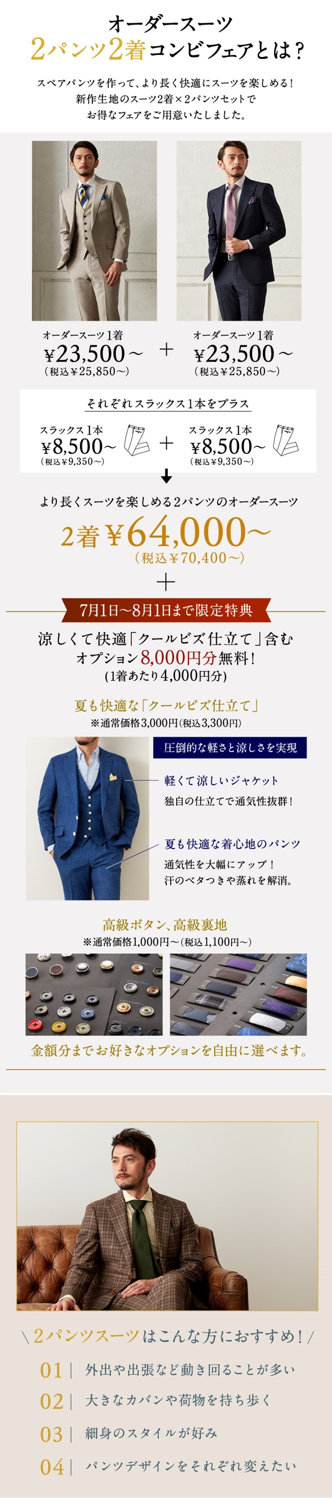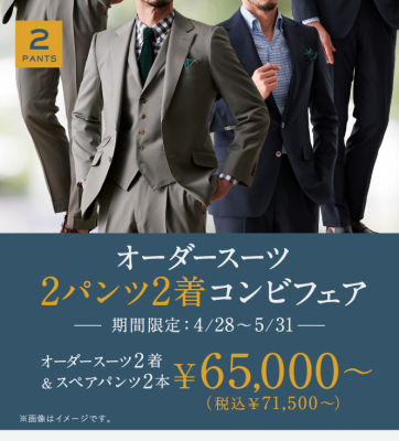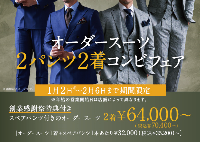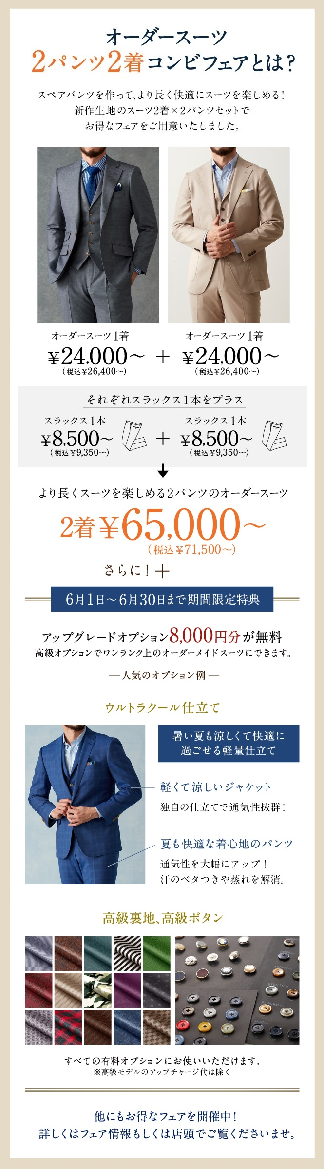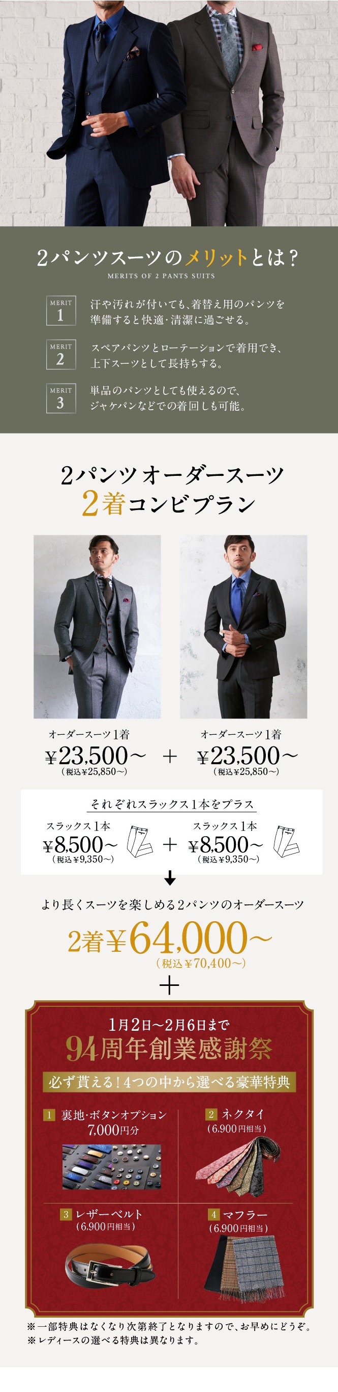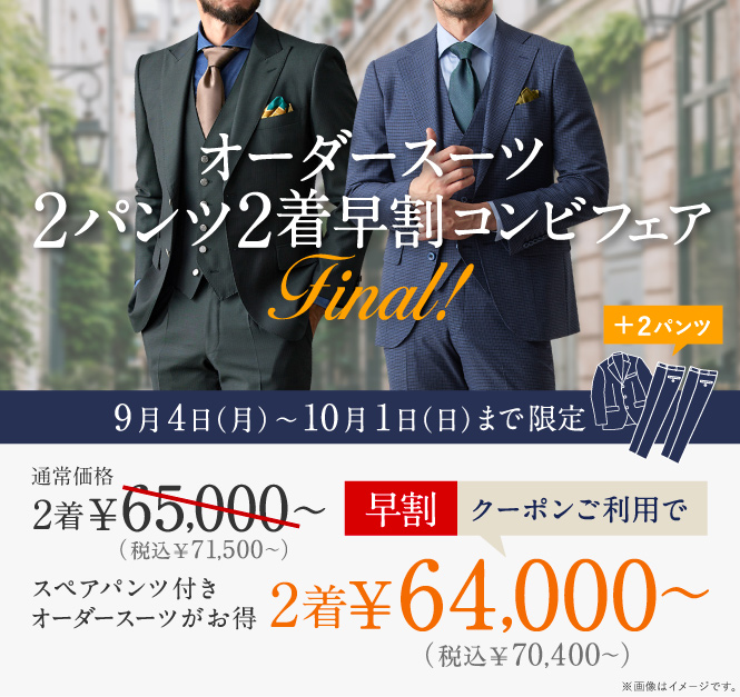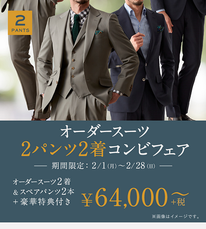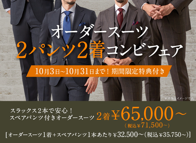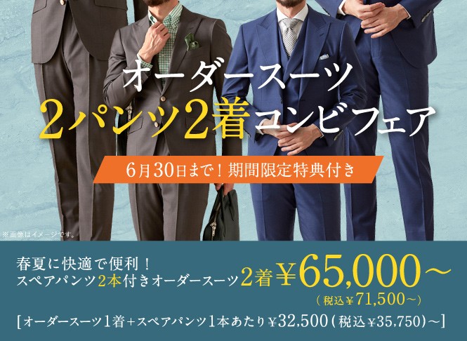 ▶本格オーダースーツ2着¥46,000~(税込¥50,600~)