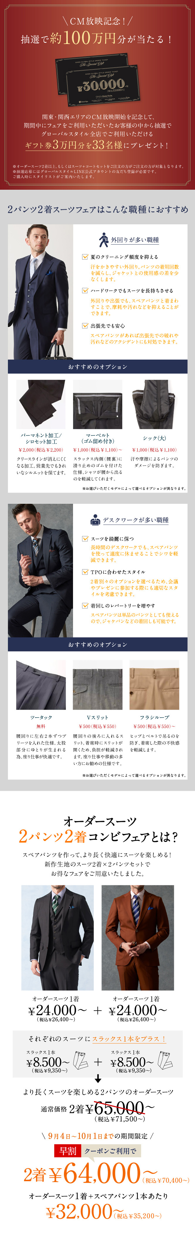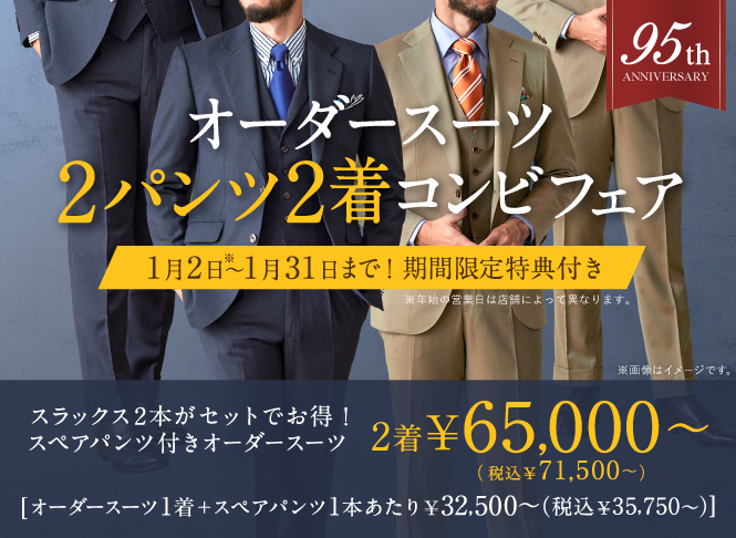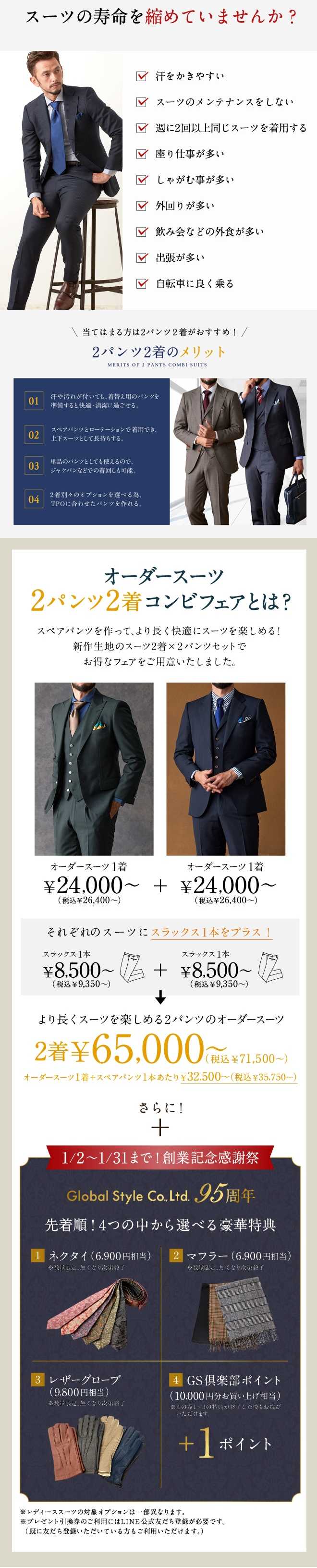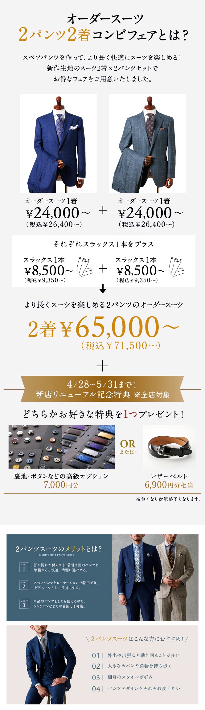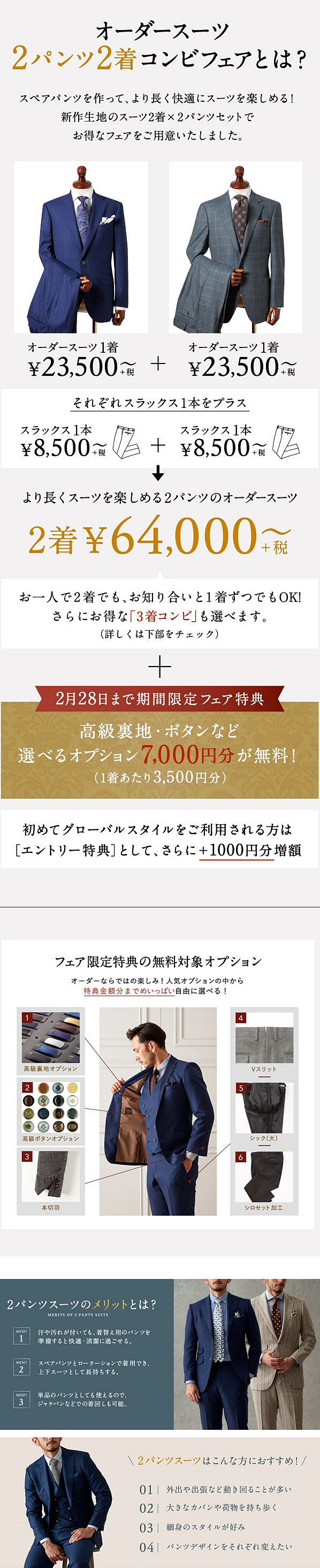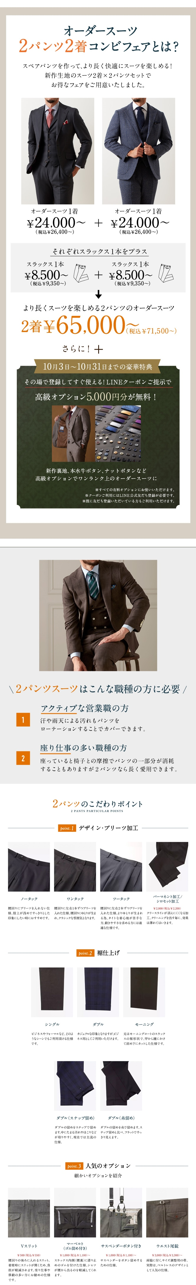 ▶本格オーダースーツ2着¥46,000~(税込¥50,600~)