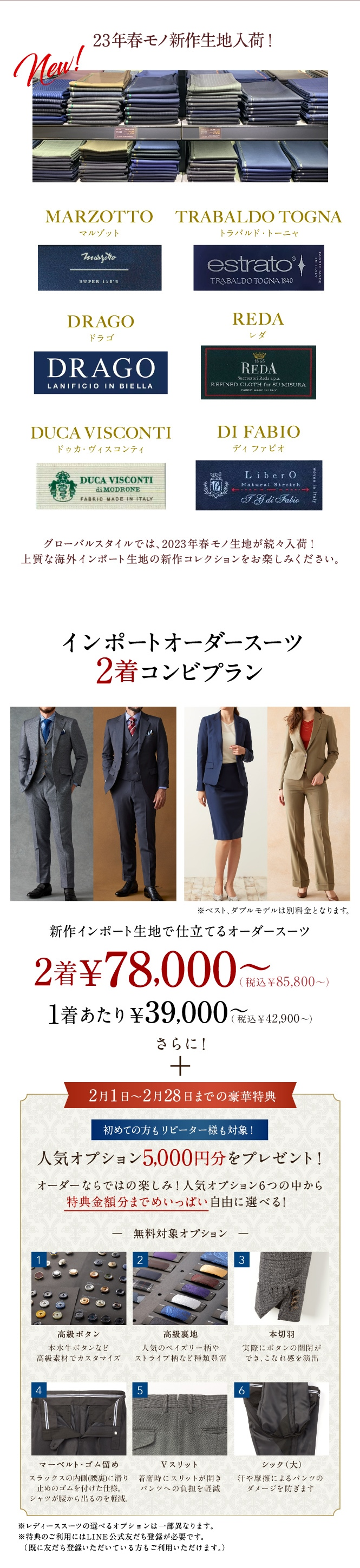 ▶人気ブランドの生地を使用したオーダースーツがまとめ買いでお得に
