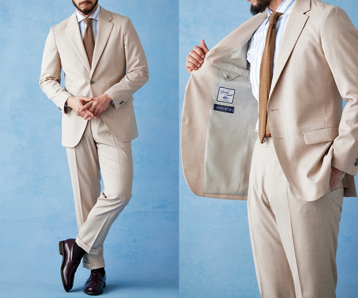 アイテムの選び方にあるように、セットアップは全体の印象が大切です。オンとオフの両方で着る方が増え、サイズの好みは個人差がありますが、オーダーの場合は、オーバー・タイトとどちらのスタイルにもつくれるので、より理想的なセットアップになります。