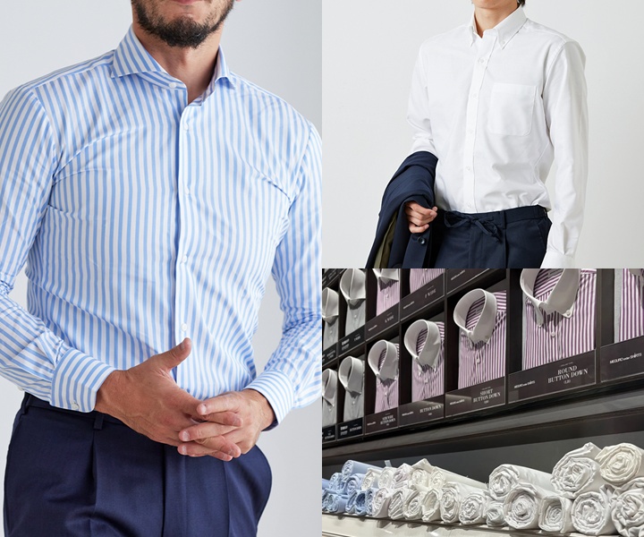 A. 会食や打ち合わせでは、ノーネクタイでも程よいきちんと感や清潔感がある、ドレスカジュアルシャツがおすすめです。ドレスカジュアルシャツはオーダースーツ専門店グローバルスタイルで作られており、ノーネクタイでもカジュアルすぎず上品な印象を与えてくれます。また襟が柔らかいため、ネクタイを締めた際も首元の窮屈さが少なく、快適に過ごせます。