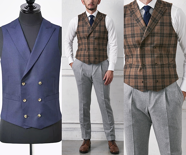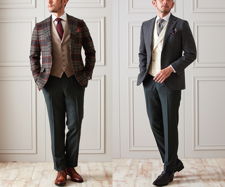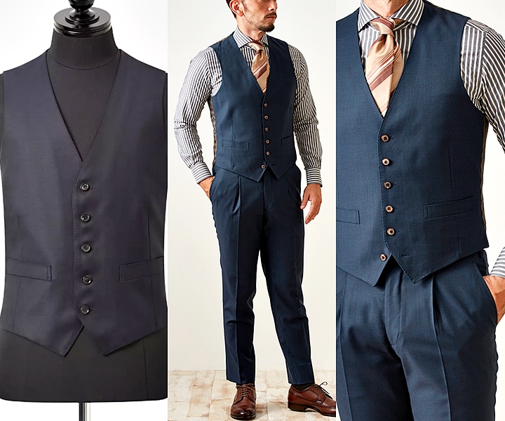 3. ベストを単体の上着と考えて他の上着と組み合わせしたりして “オッドベスト” しても使えるので着回しが利く。