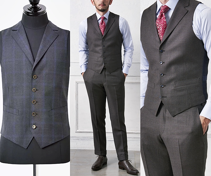 スリーピースの “ベスト” の呼び方も国によって色々違っていてフランスではジレ、イギリスではウエストコート、アメリカではベスト、イタリアではパンチオットといったように使い分けられています。日本ではチョッキと呼ばれていましたが、現在ではほぼ聞かなくなりベストと呼ばれるのが一般的です。つまり、日本ではジレとベストは同義語という事になります。