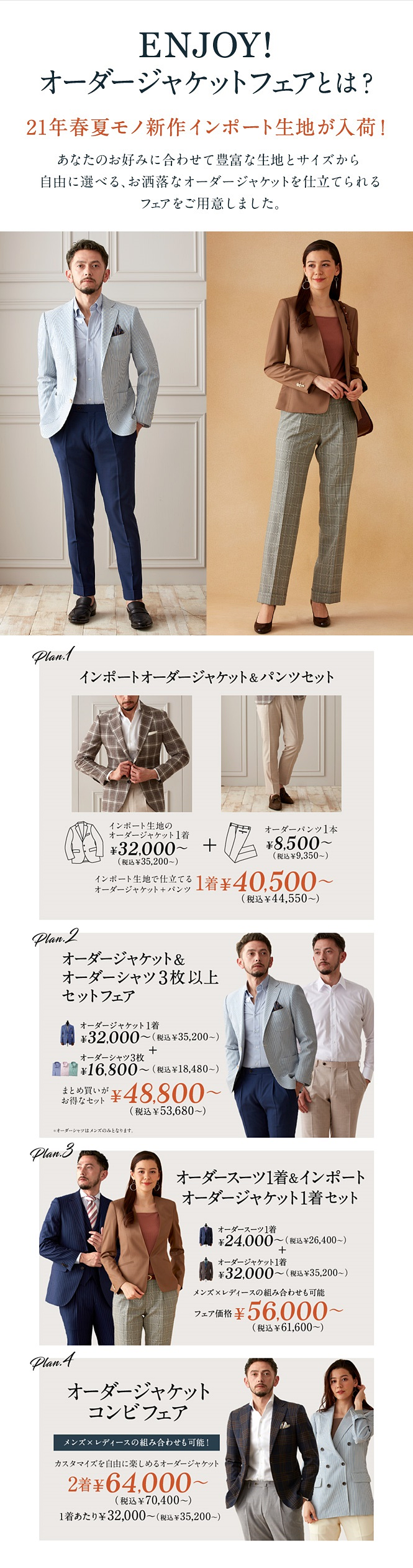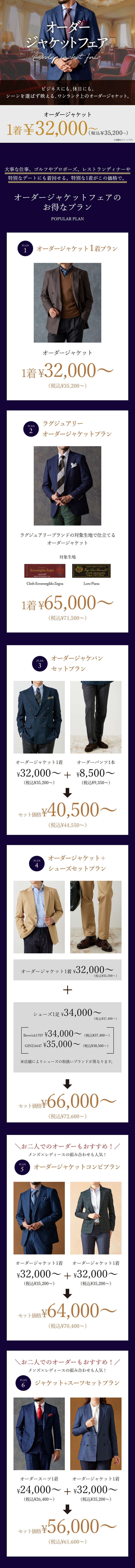 ▶オーダージャケット1着¥32,000~(税込¥35,200~)