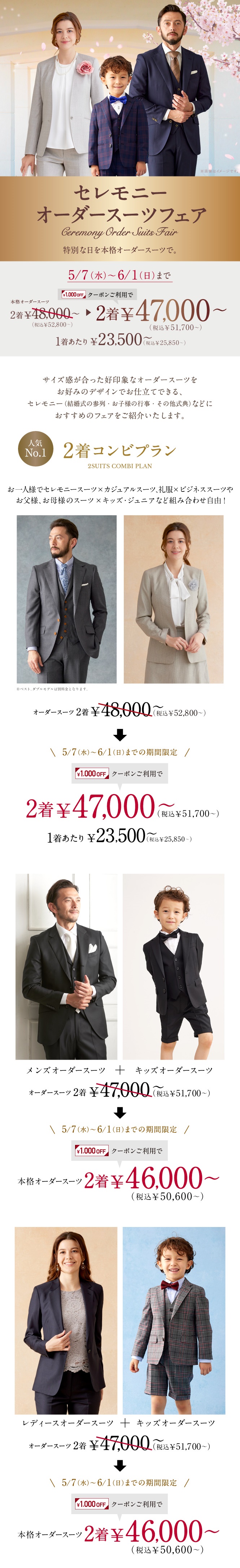 長く愛用できる、上質素材かつサイズに合ったオーダースーツを1着4万円台からと既製品のフォーマルスーツ(礼服)とさほど変わらないお値段でオーダーいただけます。