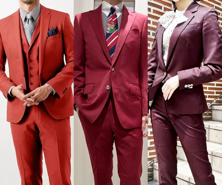 定番カラーと比較すると、個性的でスタイリッシュな赤スーツ。場面別で見る赤(レッド)スーツの着こなし方を解説。
