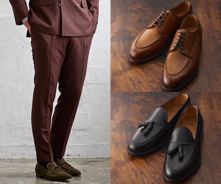 赤スーツをよりお洒落に楽しむには、靴選びも重要なポイント。赤スーツに合わせるシューズは、ブラックやブラウンがおすすめ。赤スーツを引き締め、上品な印象を与えます。イメージを変えたい時などは、スウェード調のシューズと合わせるとクラシカルで趣のあるコーディネートに仕上がります。