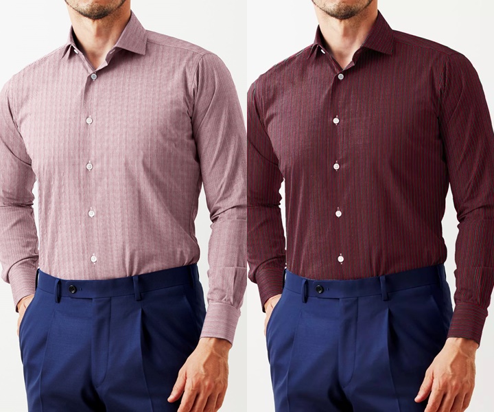 赤スーツに合わせるシャツの選び方は、全体のバランスを考慮することが重要。暗色の赤スーツにブルーシャツは大人らしさと爽やかさを与えます。定番である白シャツとの合わせ方は、赤スーツを引き立てつつスッキリとした印象と清潔感を演出します。袖口から見えるシャツの色によってスーツ全体の印象も変わってきます。