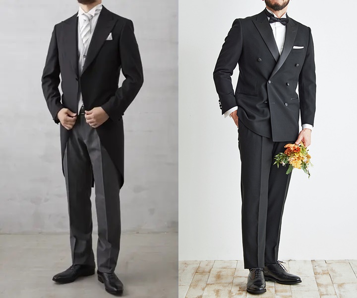 フォーマルスタイルは、最も格式が高いドレスコードとなります。正装、正礼装と呼ばれていて、結婚式の主催者側である新郎や新郎新婦の父親が着用します。「モーニングコート」、「燕尾服」、「タキシード」が該当し、着用する時間帯によって適切な服装が変わってきます。昼間の正礼装とされているモーニングコートは、主に新郎新婦の父親が着用します。また、燕尾服とタキシードは、夜の正装服とされており、白と黒でまとめるのが基本スタイルになります。