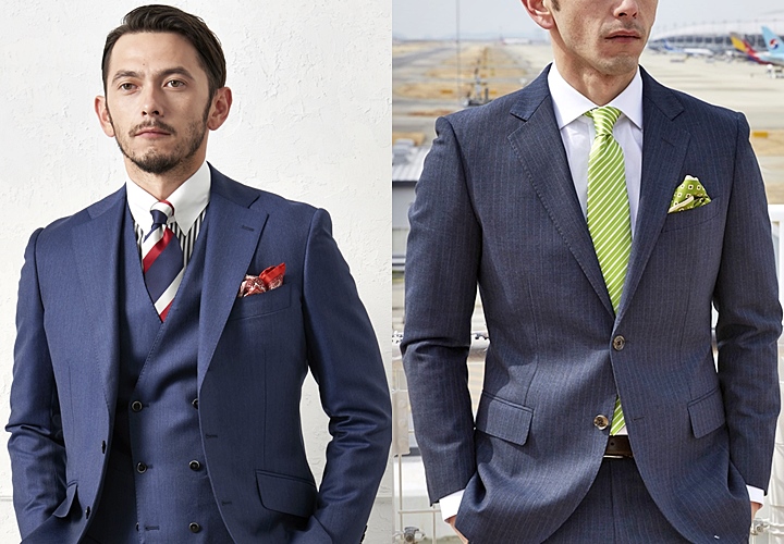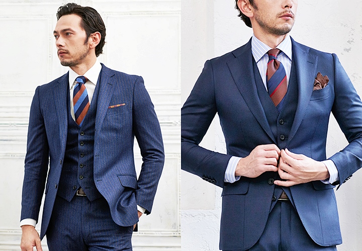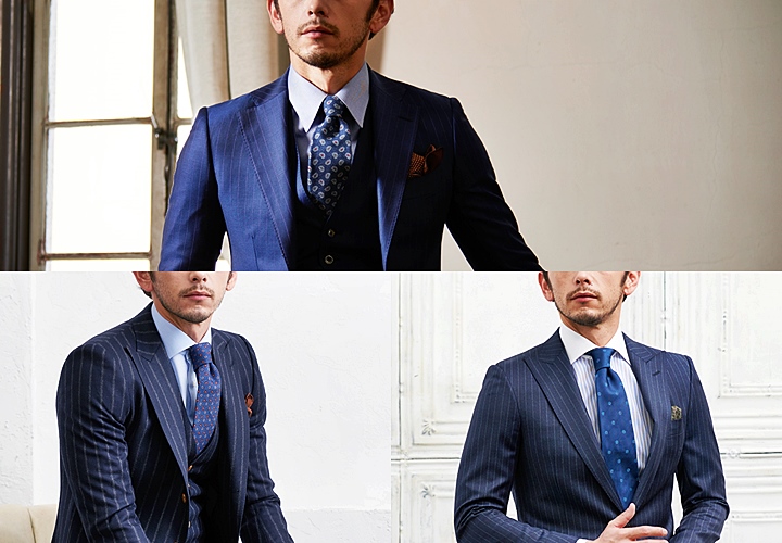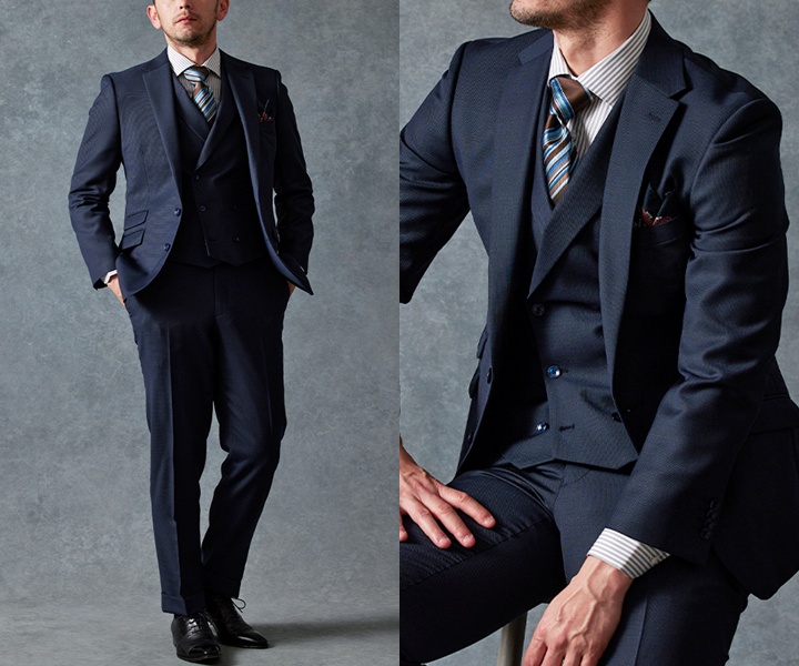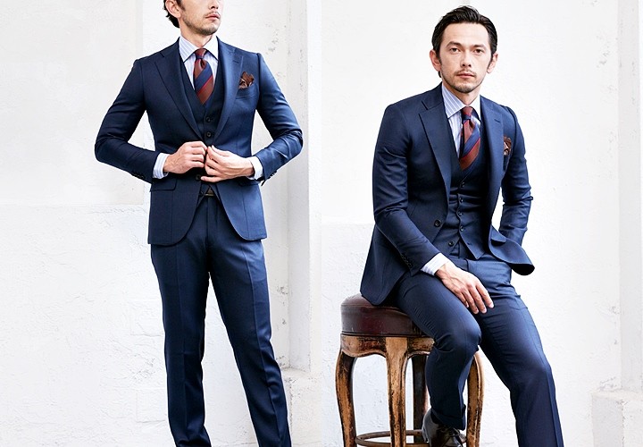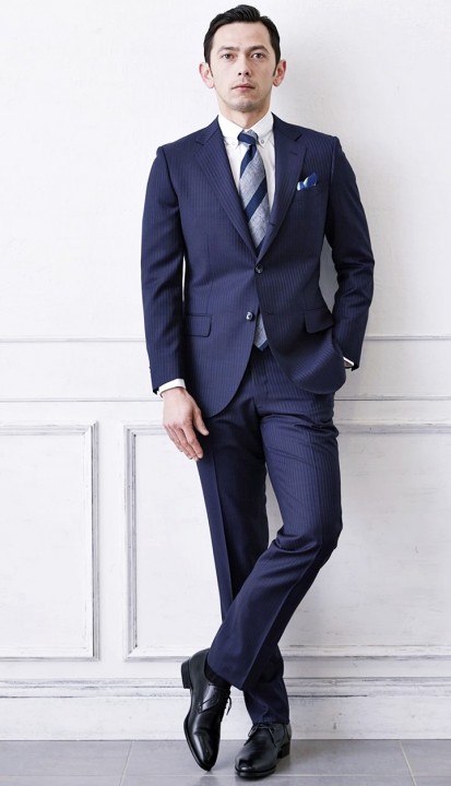 ネイビースーツは、カラーバリエーションの豊富さから季節問わず楽しめ、ビジネスシーンにみならずパーティーやイベントなど様々な場面において人気があります。そのためファッション雑誌やネット上のサイトなどでは、ちょっとこだわりが強く真似しにくい着こなしも多いのも事実です。