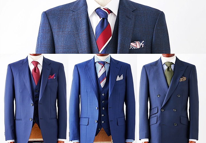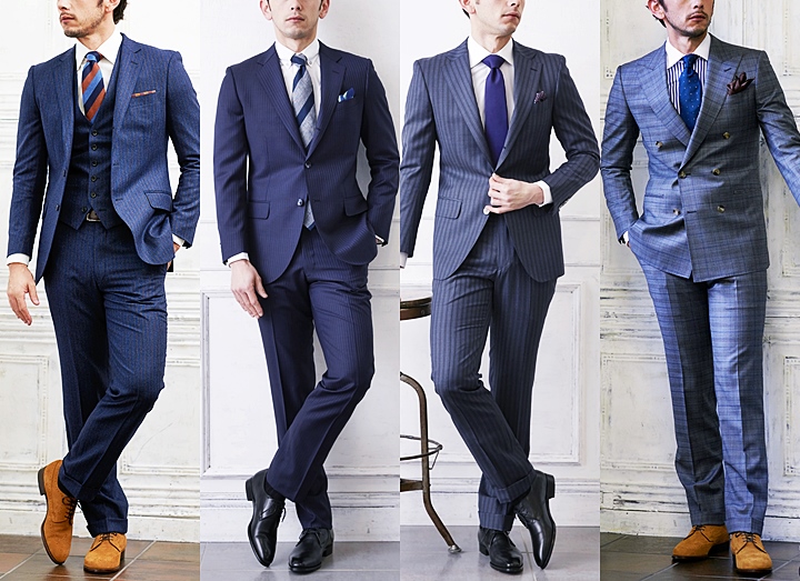 ネイビースーツはとにかく色味のバリエーションが多く、「ネイビー(ブルー)」、「紺色」、「藍色」と濃淡の違いによって印象が変わります。