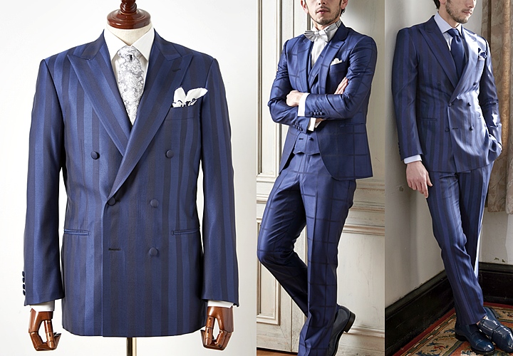 ブルー系の色味はストライプが目立ちすぎるため、派手な印象になりがちなのがネイビースーツの特徴です。そこでおすすめなのが、ライン幅の狭いストライプやシャドーストライプです。スーツの印象が控えめなので、シーンに合わせてネクタイで雰囲気を変えることができます。基本的なポイントとして、スーツ、シャツ、ネクタイで柄モノは2つまでにするとよいでしょう。