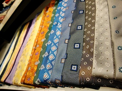 無地(ソリッド)のネクタイはどんな柄のスーツにも合う、基本の柄になります。中でも紺または茶色のネクタイに、水色シャツの組み合わせは定番で人気があります。無地はとてもコーディネートしやすいので、紺、茶、ワインレッドなど1本でも持っておくと重宝します。