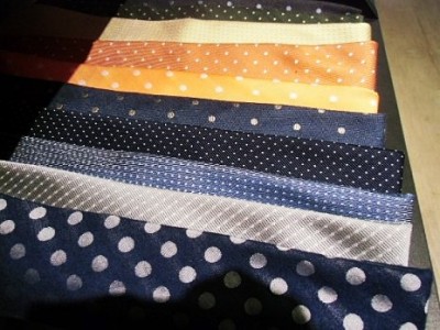 (左:無地、中央:ストライプ、右:ドット)特にネイビーは、グレーやブラックスーツに比べてネクタイの合わせ方に悩むことが多いのではないでしょうか?そこで定番の①「無地(ソリッド)」、②「ストライプ(レジメンタル)」、③「ドット」、④「小紋」の4つに分類し、おすすめのネクタイを見ていきます。