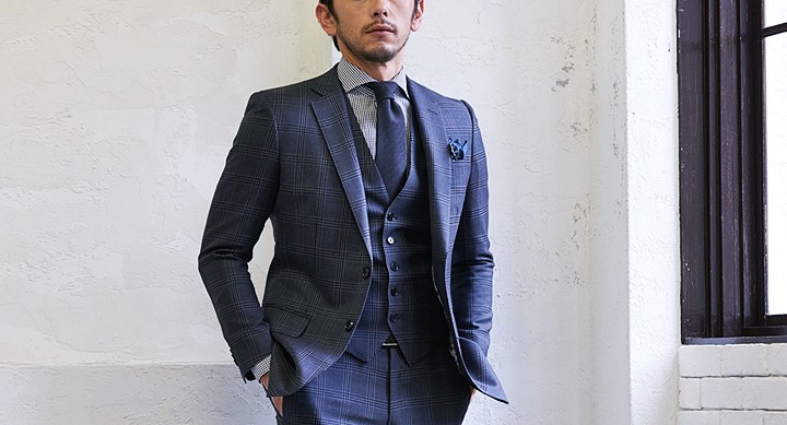 スーツの最上級スタイルのスリーピーススーツは、高級感を全面に艶感のある生地での仕立てがおすすめです。合わせるネクタイやシャツも柄数を少なく、スタイリッシュに着こなすとバランスが良くなります。