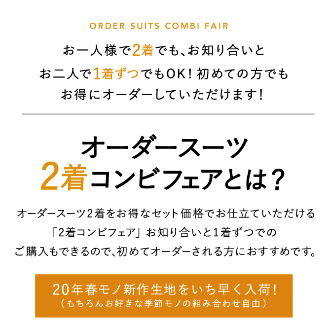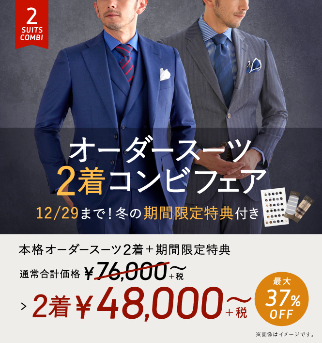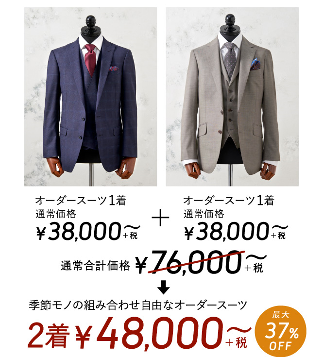 ▶本格オーダースーツ2着¥46,000~(税込¥50,600~)