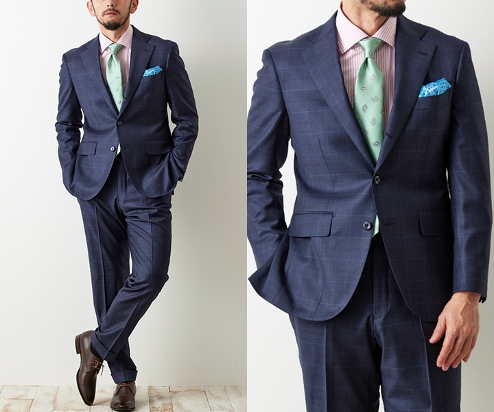 重厚感のあるネイビースーツは、ダークトーンでまとめるのがおすすめです。カジュアルよりなチェックのスーツには、中性色のグリーンでアクセントをつけるとお洒落にきまります。今季トレンドの暖色系のブラウンと合せると上品な印象を与えてくれます。