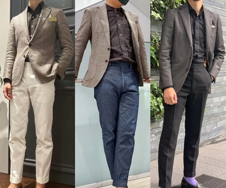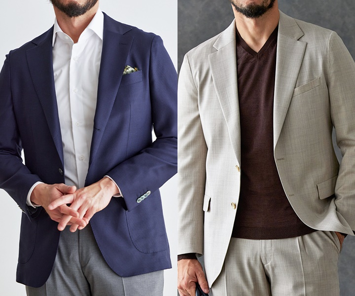 ジャケットは、定番のネイビーやグレーを選ぶとパンツと合わせやすくなります。パンツはジャケットの色味に合わせたスラックスを選びましょう。