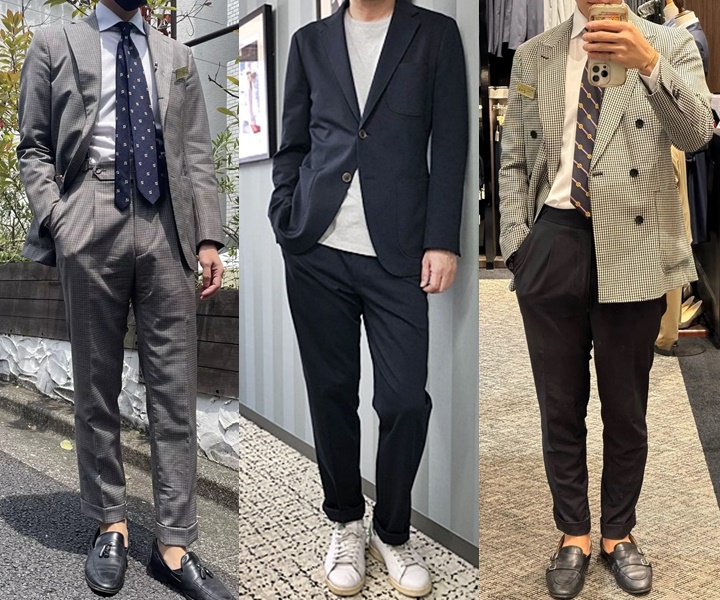 私服のスーツをお洒落に着こなすには、組み合わせ方が重要です。ここでは、スーツの着こなし例を紹介します。