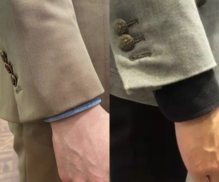 また、ジャケットの袖口には、本切羽(本開き)やカフス(カフスボタン)など、さまざまなデザインがあります。カフスを使う場合は、袖を少し短めにすることで、カフスの存在感を演出することができます。袖はわずかな違いで印象が変わるため、細部にもこだわった着こなしを意識すると良いでしょう。